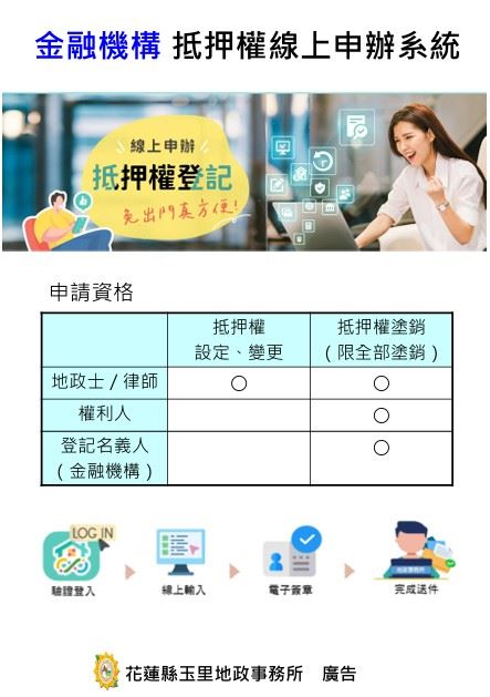 內政部「抵押權線上申辦系統入口網」自113年11月1日起提供金融機構抵押權線上申辦服務